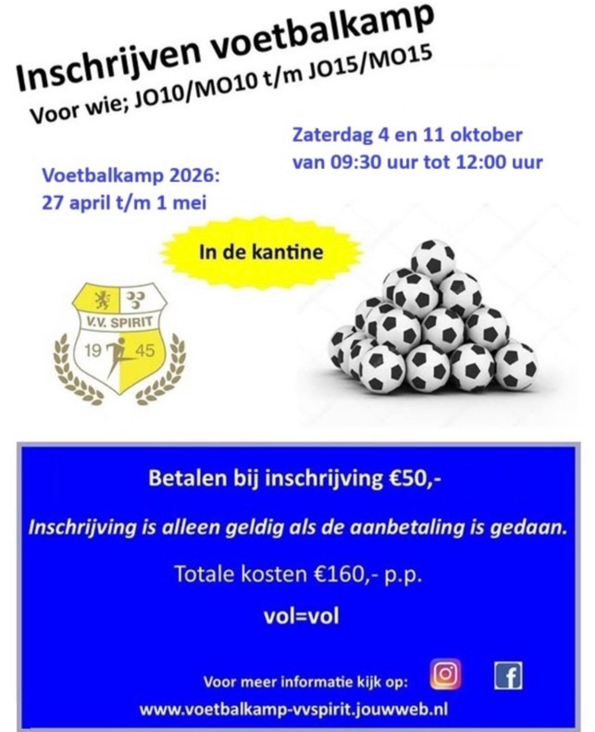 Het komende Voetbalkamp wordt gehouden van 27 april tot en met 1 mei 2026. Voor meer informatie klik op onderstaand plaatje: