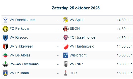 Zaterdag 25 oktober Drechtstreek - Spirit (competitie), aanvang 14.30 uur