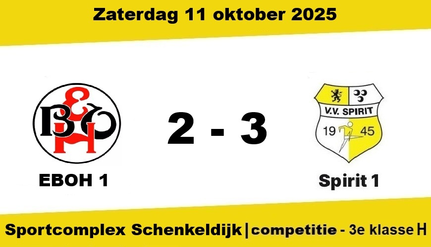 EBOH begon de tweede helft opnieuw fel, maar zonder tot uitgespeelde kansen te komen. Spirit bleek effectiever: uit een goed genomen corner kopte Ruben Slooff de 1-3 binnen.