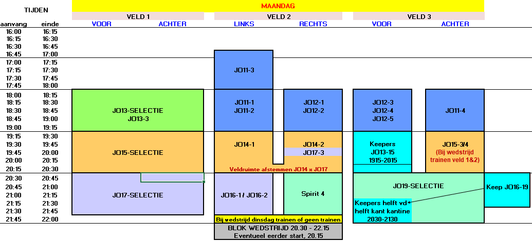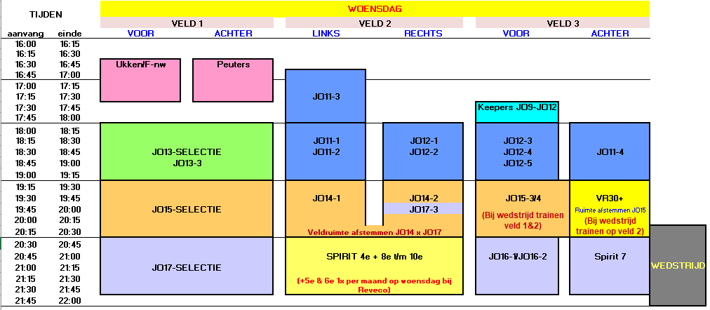 Hieronder staat het trainingsschema voor het seizoen 2025-2026. VERSIE 01/01/2026